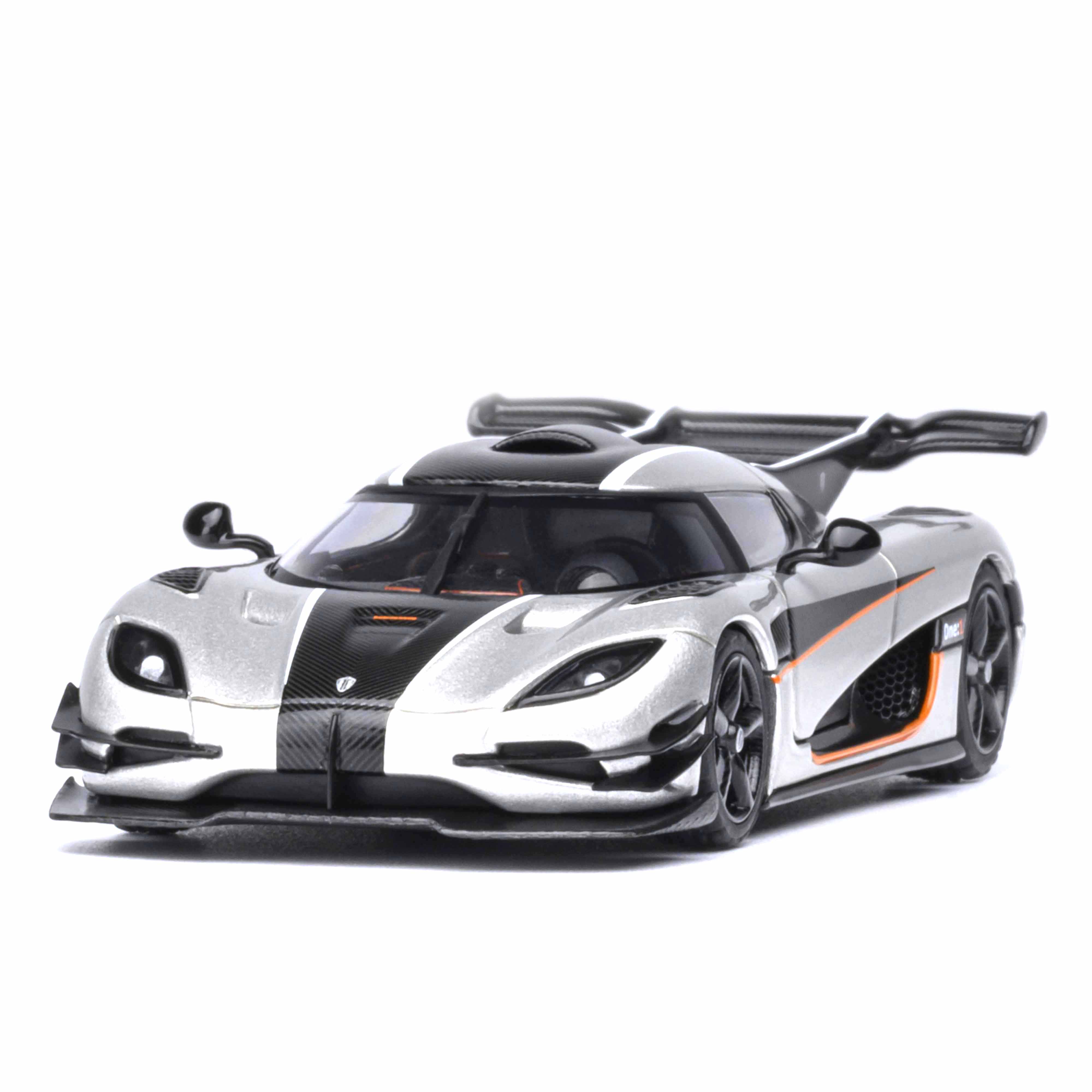Koenigsegg One : 1 Moon grey/Carbon black/Orange accents 1:64